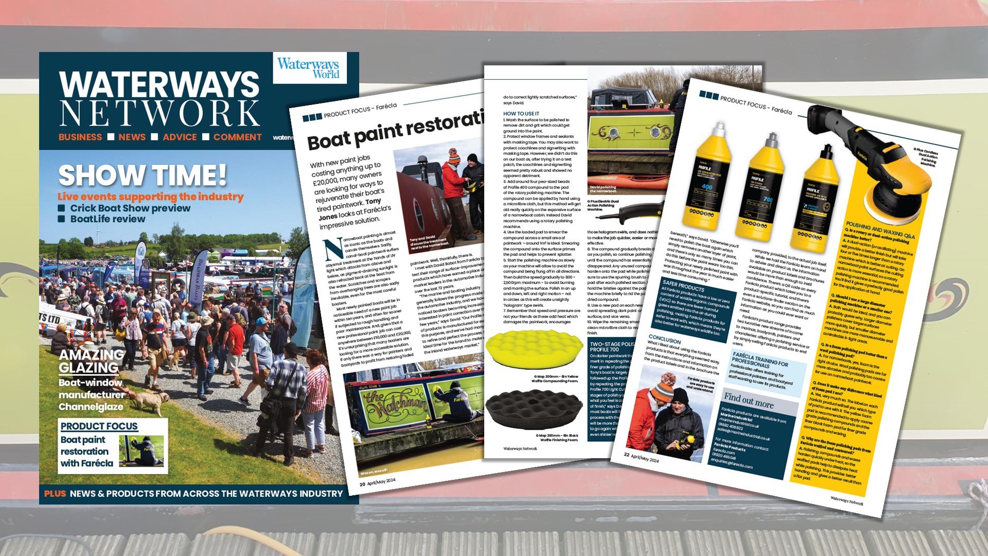 Body Paint Restoration on Narrowboats - Farécla Profile Range Spotlighted in Waterways Network Magazine