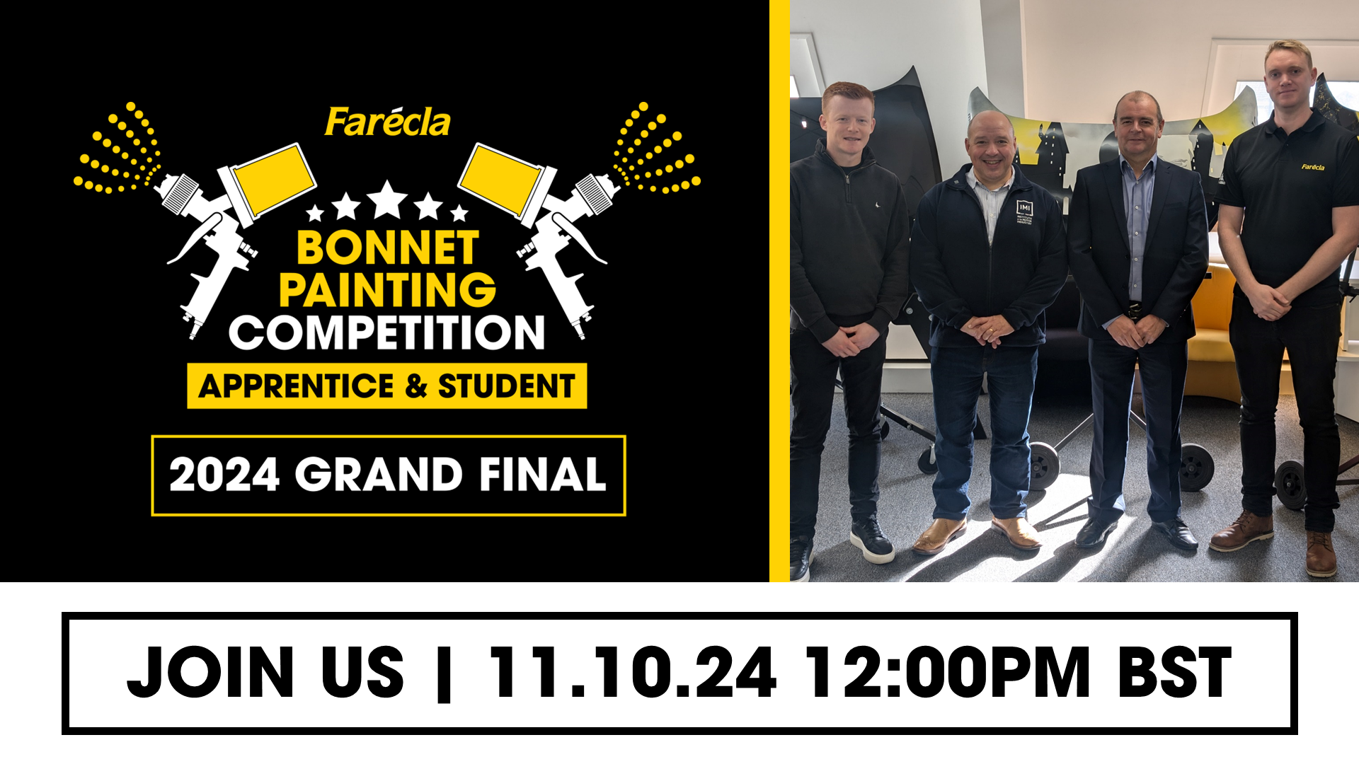On Friday 11th October at 12:00 Noon (BST), Farécla will be announcing the winner of the 2024 Apprentice and Student Bonnet Painting Competition as part of a special livestream presentation of the Grand Finals