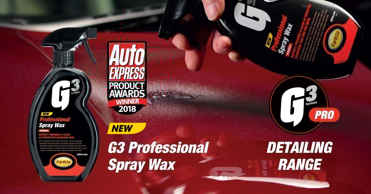 G3 Pro Spray Wax from Farécla has just been crowned as the winner of the prestigious Auto Express Product Award for Best Detailer Spray of 2018!