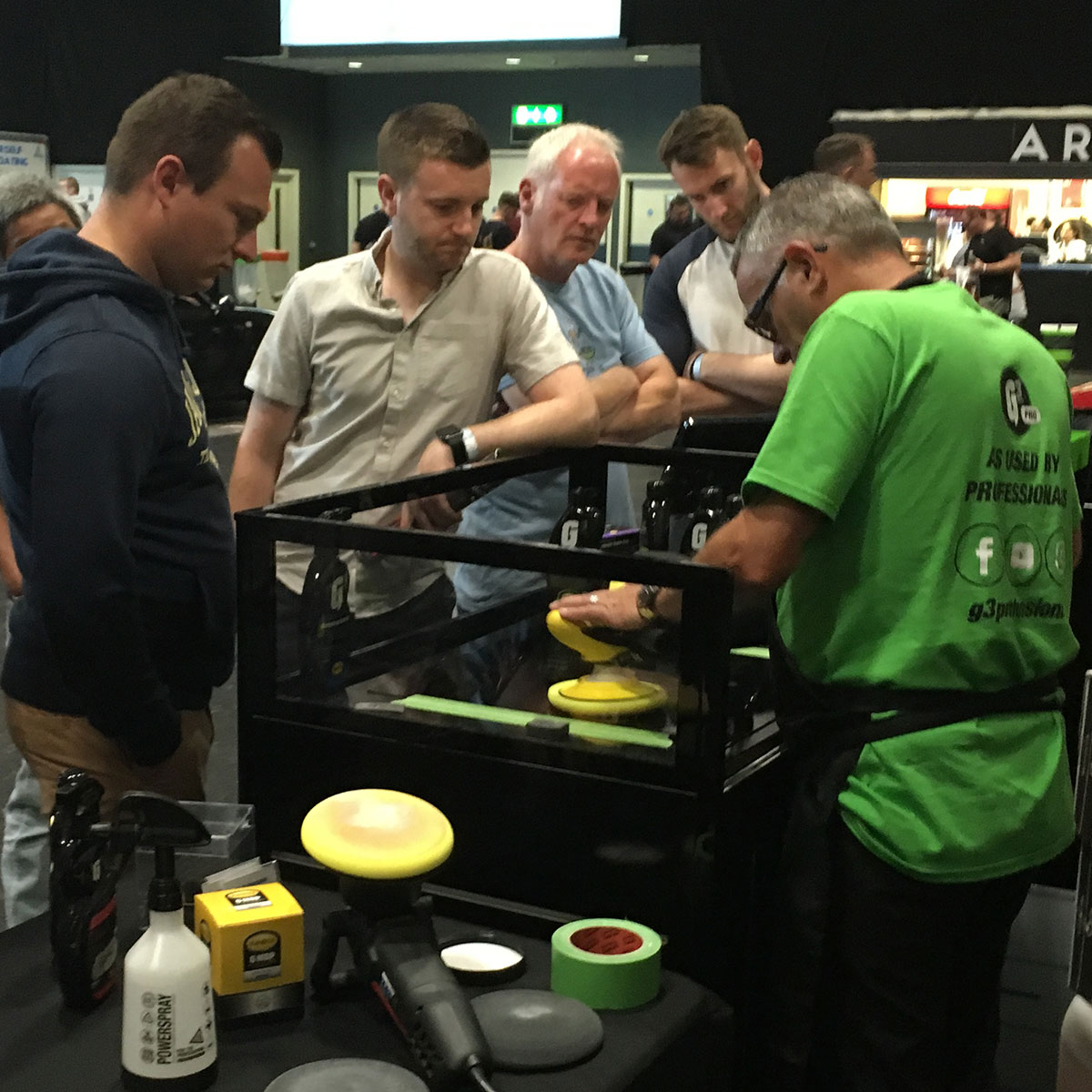 We provided live demonstrations of our abrasives and waxes, with visitors to the G3 Pro stand getting hands on with products, together with examples of interior cleaning, wheel cleaning and tyre finishing, metal polishing and headlight restoration.