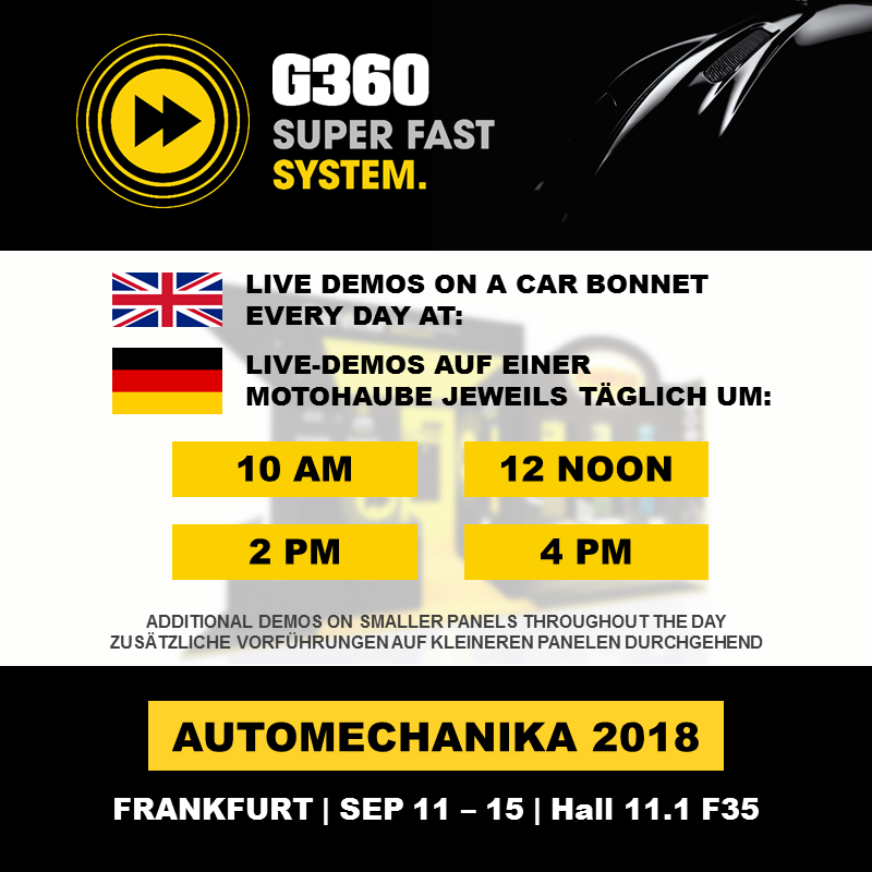 Farécla will be exhibiting at Automechanika Frankfurt, September 11-15 on Stand F35 in Hall 11.1, and showcasing our NEW G360 Super Fast System with live demos throughout the show.