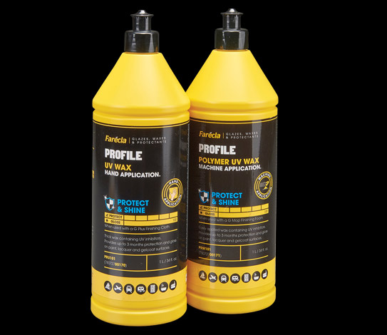 Profile Polymer UV Wax for Machine Application is an easily applied wax containing UV inhibitors that provides up to 3 months protection and gloss on paint, lacquer and gelcoat surfaces.