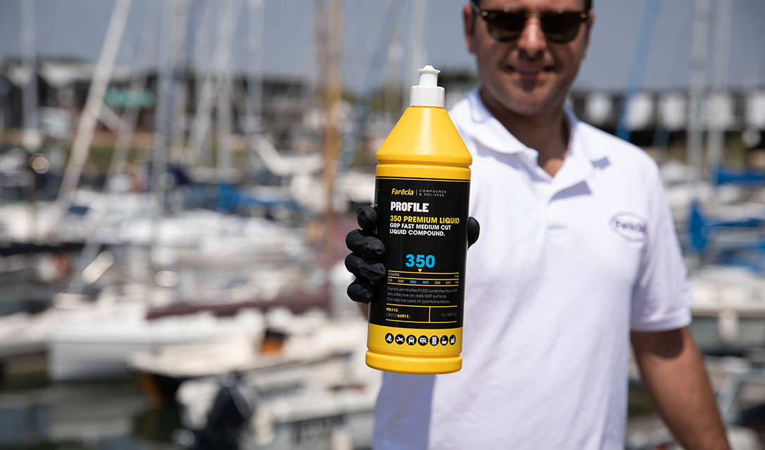 The Farécla Profile Premium Liquid Compound reduced polishing times by 15 minutes per boat, and was able to remove one step in their process with black and darker colors and two steps with white or lighter colors. The viscosity of Profile Premium Liquid Compound creates less splatter, and it is water-based which leads to less clean-up.
