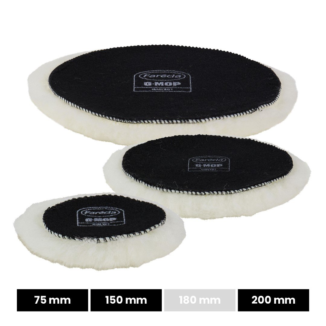 The G Mop Lambs Wool Pad is constructed using natural sheepskin and a velour backing. It gives a high cut and great finish, depending on the product used.